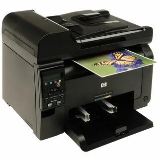 HP Laserjet Pro 100 Color MFP 175a — лазерное многофункциональное устройство (МФУ) для малого офиса. Некоторые характеристики: Принтер: технология печати — лазерная, количество цветов — 4, максимальный формат — A4, скорость черно-белой печати — 16 стр/мин, цветной — 4 стр/мин. Сканер: тип — планшетный/протяжный, максимальный формат оригинала — A4, разрешение — 1200 dpi, скорость сканирования цветной — 6 стр/мин, черно-белой — 14 стр/мин. Копир: максимальное количество копий за цикл — 99, диапазон масштабирования — от 25 до 400%, скорость черно-белого копирования — 16 стр/мин, цветного — 6 стр/мин. Память и процессор: объём памяти — 128 МБ, процессор — ARM 11, частота — 600 МГц. Интерфейсы: AirPrint, USB. Поддержка ОС: Linux, Mac OS, Windows, iOS. Дисплей: ЖК-панель. Потребляемая мощность: при работе — 310 Вт, в режиме ожидания — 11 Вт. Уровень шума: 52 дБ. Габариты: ширина — 442 мм, высота — 337 мм, глубина — 323 мм. 1 Вес: 18,8 кг.