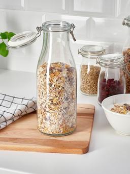 Стеклянная банка объёмом 1,4 литра с крышкой в форме бутылки — надёжное решение для хранения продуктов и напитков.