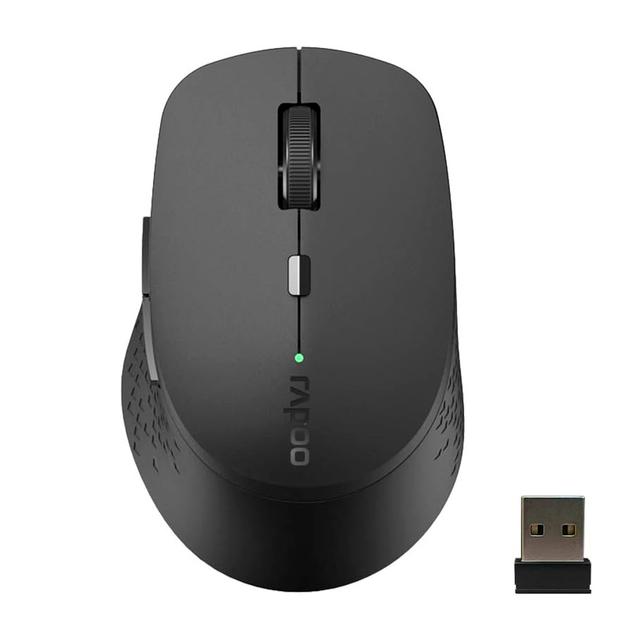 Rapoo M300L Silent — это компактная и умная мышь, главной особенностью которой является возможность работы в «многозадачном» режиме. Благодаря бесшумным кнопкам, она идеально подходит для работы в офисе, библиотеке или дома в ночное время, не беспокоя окружающих. Основные характеристики: Мульти-режим (Multi-mode): Поддерживает одновременное подключение к нескольким устройствам через Bluetooth 3.0, 4.0 и радиоканал 2.4 ГГц. Переключение между ними происходит одной кнопкой. Бесшумные кнопки: Специальные переключатели обеспечивают тихий клик, сохраняя при этом приятное тактильное ощущение. Регулируемый сенсор: Оптический датчик высокого разрешения с возможностью настройки 600 / 1000 / 1300 / 1600 DPI для разных задач. Эргономика: Удобная форма с прорезиненными боковыми вставками для надежного захвата. Энергосбережение: Благодаря технологиям Rapoo, мышь может работать до 9–12 месяцев от одной батарейки AA. Дизайн: Компактный размер, который легко помещается в любую сумку.
