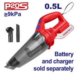 Напряжение: 20 В Объем пылесборника: 0,5 л Давление всасывания: ≥9 кПа В комплект входят: 1 щелевая насадка, 1 пылевая щетка Аккумулятор и зарядное устройство продаются отдельно Упаковано в цветную коробку