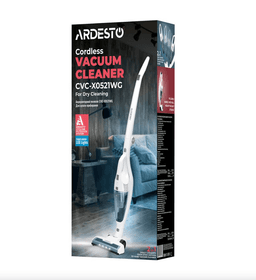 Ardesto CVC-X0521WG — вертикальный пылесос с аккумуляторным питанием и турбощёткой. Его можно преобразовать в ручной, отсоединив мини-блок от основной конструкции. Некоторые характеристики: Мощность: 85 Вт. Объём пылесборника: 0,55 л. Мощность всасывания: 29 Вт. Напряжение аккумулятора: 18 В. Частота тока: 50 Гц, 60 Гц. Время работы от аккумулятора: в турборежиме — 17 минут, в обычном — 35 минут. Время зарядки: 4–6 часов. Ёмкость аккумулятора: 500 мА⋅ч. Комплектация: пылесос, две насадки, адаптер питания, настенное крепление. Физические характеристики: цвет — белый, ширина — 300 мм, высота — 600 мм, вес — 3,3 кг. Особенности: LED-подсветка поверхностей для качественной очистки. Корпус складной для компактного хранения. Контейнерный пылесборник и фильтры можно мыть. Турбощётка оснащена автоблокировкой при попадании слишком больших предметов в сопло.