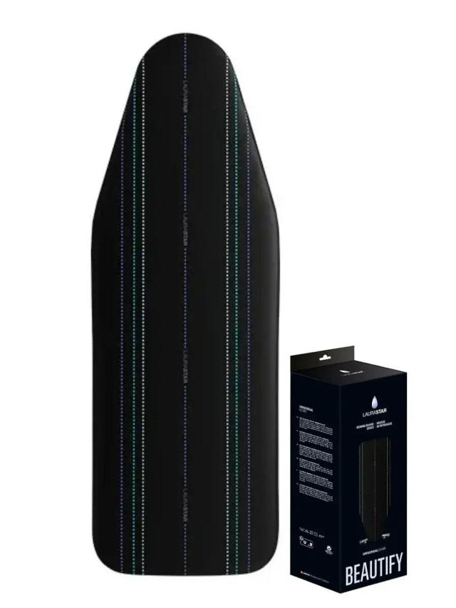 Универсальный чехол Universalcover BLACK Smart с уникальным дизайном от Laurastar подходит для большинства гладильных досок Laurastar. Благодаря практичному креплению (шнурок с фиксатором) его легко можно закрепить на гладильной поверхности разного размера. Чехол обеспечивает высокий комфорт и облегчает процесс глажения. Разрешена деликатная машинная стирка при 30 °С без отжима. Состав чехла : верхняя часть - 100% хлопок, подкладка - 100% полиэстер. Размеры (Д х Ш): 131x55 см