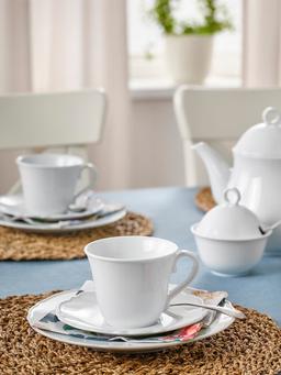Белая чашка с блюдцем, объём 230 мл. Выполнена из прочной керамики, подходит для повседневного использования. Идеальна для чая, кофе и других горячих напитков. Можно использовать в микроволновой печи и мыть в посудомоечной машине. Лаконичный белый дизайн гармонирует с любым сервизом и интерьером.