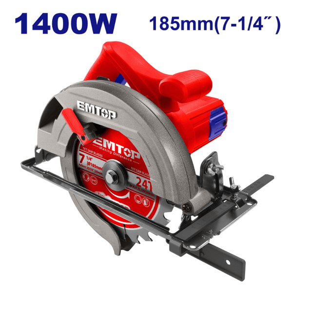 Дисковая пила EMTOP — это мощный инструмент для распиловки древесины и других материалов. С входной мощностью 1400 Вт и скоростью холостого хода 4800 об/мин она обеспечивает эффективный рез. Пила оснащена лезвием диаметром 185 мм с посадочным отверстием 20 мм. Максимальная глубина реза составляет 65 мм под углом 90° и 45 мм под углом 45°. Возможность регулировки глубины и скоса реза делает эту пилу универсальной для различных столярных задач. В комплект входит одно лезвие 185 мм и запасные угольные щетки. Упакована в цветную коробку. Технические характеристики: Тип: Дисковая (циркулярная) пила Напряжение: 220-240 В~50/60 Гц Входная мощность: 1400 Вт Скорость холостого хода: 4800 об/мин Диаметр лезвия: 185 x 20 мм Режущая способность под 45°: 45 мм Режущая способность под 90°: 65 мм Особенности: Регулируемая глубина реза, Регулируемый скос Комплектация: Дисковая пила EMTOP Лезвие (Диск) 185 мм: 1 шт. Дополнительные угольные щетки: 1 комплект Упаковка: Цветная коробка