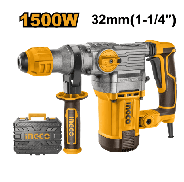 Перфоратор SDS-Plus INGCO RH150038 INDUSTRIAL применяется для строительных работ, монтажных работ,‚ бытового ремонта, пробивания отверстий в природном камне, бетоне, кирпиче также пригоден для сверления отверстий в древесине, металле, керамике и синтетических материалах. Благодаря современному дизайну рукоятки имеют мягкие резиновые накладки, снижающие вибрационную отдачу, выскальзывание перфоратора из руки и утомляемость рук. Благодаря системе поддержания постоянной мощности, даже при больших нагрузках мощность инструмента не падает, а остается на заданном уровне. Данная модель сочетает в себе небольшого вес и высокую мощности, отличается длительным сроком службы, который достигается благодаря металлическому корпусу редуктора, обеспечивающего эффективный отвод тепла и защиту от механических повреждений. В перфораторе установлены угольные щеки с автостопом. При полном износе щеки отключаются, что не позволит запустить инструмент и привести к поломке. Тип инструмента: Перфоратор SDS-plus Линейка: INDUSTRIAL Модель: INGCO RH150038 Тип двигателя: Щеточный Мощность: 1500 Вт Напряжение: 220-240В~50/60 Гц Макс. сила удара: 5,5 Дж Частота вращения шпинделя: 0-950 об/мин Частота ударов: 0-4500 уд/мин Max диаметр сверления буром (бетон) 32 мм Max диаметр сверления буром (кирпич) 36 мм Max диаметр сверления (металл) - 13 мм Мах диаметр сверления (дерево) - 40 мм Max диаметр сверления коронкой (кирпич) - 65 мм Max диаметр сверления коронкой (бетон) - 65 мм Количество режимов: 3 режима