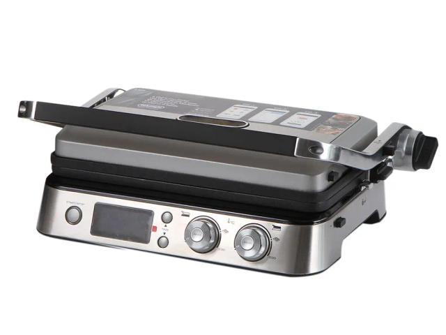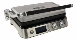 DeLonghi CGH 1020D — модель электрогриля, которая работает в трёх режимах: контактный гриль (с закрытой крышкой), открытая жаровня (крышка откинута) и «гриль-печь» (верхняя панель приподнята над нижней). Назначение: гриль позволяет приготовить различные продукты: стейки, колбаски, гамбургеры, овощи или рыбу. Характеристики Мощность: 2000 Вт. Материал корпуса: нержавеющая сталь. Съёмные панели: две рифлёные и две гладкие. Панели с антипригарным покрытием, их разрешено мыть в посудомоечной машине. Температура нагрева: задаётся в диапазоне от 60 до 230 градусов отдельно для каждой поверхности при помощи поворотных регуляторов. Режим Sear: для быстрой прожарки продуктов в начале готовки (оптимален для толстых кусков мяса). Встроенный дисплей: отображает все параметры работы и активные установки гриля. Излишки жира: стекают в специальный поддон, который легко снимается для очистки. Габариты: высота — 18,5 см, ширина — 45,8 см, глубина — 34,3 см. Вес: 9,56 кг. В комплекте: съёмные пластины, лопатка для очистки, ёмкость для сбора стекающего жира. Страна производства: Китай. Инструкция по эксплуатации Руководство по эксплуатации электрогриля DeLonghi CGH 1020D написано на 18 языках. Русскоязычный блок начинается на 144-й странице и заканчивается на 163-й. В инструкции есть меры безопасности, описание прибора, его отдельных частей и конструкции, перечень действий перед началом эксплуатации, правила эксплуатации, описание особенностей различных режимов. Некоторые меры безопасности: Перед подключением прибора к розетке электропитания нужно убедиться, что напряжение электросети соответствует указанному на табличке прибора, розетка рассчитана на ток 16 А и имеет провод заземления. Провод электропитания не должен контактировать с частями прибора, которые нагреваются во время его работы. До того, как убрать прибор или снять плиты для жарки, а также до выполнения любой операции по очистке и уходу, нужно выключить прибор и извлечь вилку из электрической розетки, убедиться, что прибор полностью остыл. Не использовать прибор вне помещений, не погружать его в воду. Прибор нельзя включать через внешний таймер или через систему с дистанционным управлением.