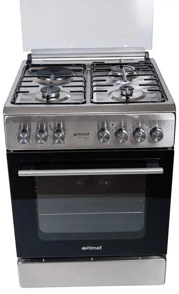 Газовая плита Itimat I-6011 сочетает газовую варочную панель и электрическую духовку. Некоторые характеристики: Размеры: 60×60×85 см. Объём духовки: 67 л. Управление: механическое. Переключатели: поворотные. Максимальная температура духовки: 220 °С. Электроподжиг: есть. Таймер: есть. Ящик для посуды: да. Цвет: чёрный. Страна производства: Турция. Некоторые особенности: подсветка духовки для контроля за процессом приготовления без открывания дверцы; конвекция.