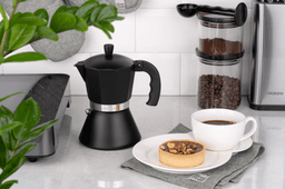 Ardesto Gemini Trento AR0806AIB — гейзерная кофеварка, которая позволяет приготовить до шести чашек кофе одновременно. Некоторые характеристики: Материал корпуса: алюминий. Обеспечивает равномерное распределение тепла и долговечность изделия. Материал ручки: нейлон. Удобная негорючая ручка позволяет безопасно переносить и использовать кофеварку. Объём резервуара для воды: 0,3 литра. Совместимость с видами плит: газовые, индукционные, стеклокерамические Hi-Light, чугунные. Цвет: чёрный. Габариты: 19×14×12 см. Вес: 0,5 кг. Страна производителя: Китай.
