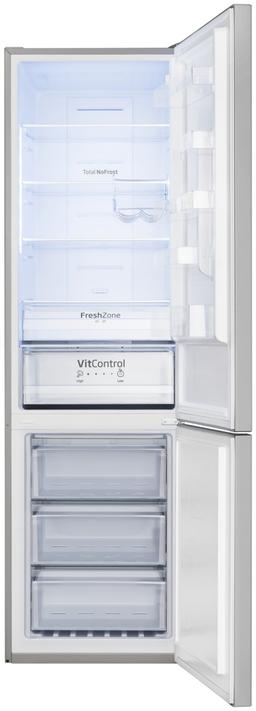 Холодильник Hansa FK3556.5CDFZX — стильный и функциональный двухкамерный холодильник с технологией Total No Frost. Он не требует разморозки ни холодильной, ни морозильной камеры. Некоторые функции и особенности холодильника: SuperCool — быстрое охлаждение свежих продуктов. По достижении запрограммированной температуры функция выключается автоматически. SuperFreeze — интенсивная заморозка до 4,5 кг в сутки Eco-режим — минимальное энергопотребление с поддержкой оптимальных температур. Holiday — экономичный режим при длительном отсутствии. Предотвращает изменение температуры в холодильнике, защищает от неприятных запахов и снижает энергопотребление.