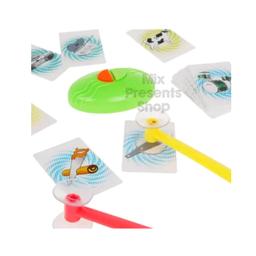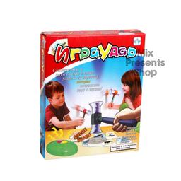 Настольная игра «Удар» включает 52 карточки, 4 молотка и клопфер. Она подходит для 2-4 человек. Цель игры ударить своим молоточком по карточке, которая будет составлять пару со звуком, воспроизведённым клопфером. Здесь важна скорость реакции, т.к. игроку нужно будет опередить своих соперников. Игрок, «захвативший» при помощи молотка как можно больше карточек, считается победителем! Для работы игры потребуется 2 батарейки типа ААА на 1,5 V (не входят в комплект). Возраст: от 3 лет Игроки: 2-4 игрока