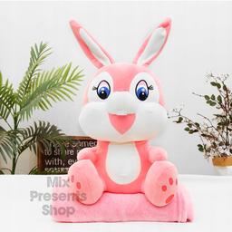 Игрушка мягкая "Кролик" с пледом 3в1 (игрушка, плед, подушка) розовая