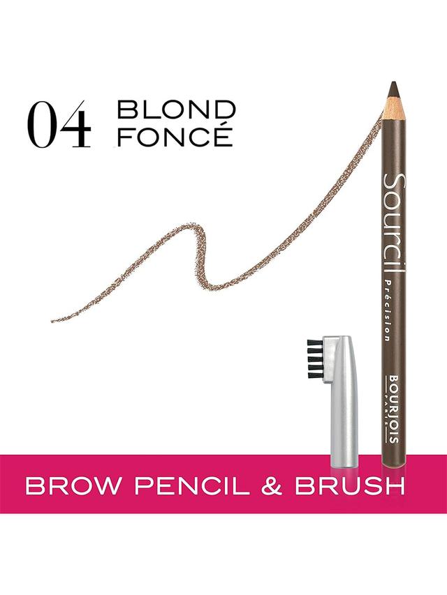 Характеристики Цвет: №04 BLOND FONCE Объем: 1.13gr Описание Брови играют решающую роль в характере взгляда. Плотная текстура карандаша позволяет наполнить брови красивым, натуральным цветом. Идеальная щеточка придает бровям безупречный вид. Карандаш Sourcil Precision не растекается и позволяет при желании изменить форму брови. Способ применения Брови необходимо причесать и карандашом нанести метки, чтобы правильно и равномерно нанести штрихи. Потом волоски причесываются щеточкой для бровей и наносятся сами штрихи по направлению роста бровей. Цвет карандаша может быть однотонным или же разным.