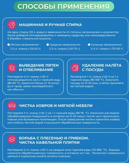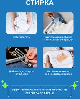 Кислородный отбеливатель WELLODA с перкарбонатом натрия представляет собой универсальное средство для поддержания чистоты в вашем доме. Этот кислородный отбеливатель-пятновыводитель, содержащий перкарбонат натрия, не только безопасен, но и изумительно эффективен в борьбе с самыми разнообразными загрязнениями. Он станет вашим верным союзником в устранении пятен от напитков, пищевых продуктов, жира, крови, овощей и фруктов на вашей одежде, а также в очистке посуды, кухонной утвари, стекла, камня, мягкой мебели, ковров и обуви. Этот гипоаллергенный кислородный отбеливатель не содержит хлора и отдушек, делая его идеальным выбором для семей с аллергиками и маленькими детьми. Активация средства происходит при температуре выше 60 градусов Цельсия, поэтому мы рекомендуем замачивать загрязненную одежду в кипятке при температуре 60-70 градусов и оставить на 1-2 часа для максимальной эффективности. Кислородный отбеливатель WELLODA обеспечивает не только эффективную очистку, но и сохранение цвета вашей одежды, так как он не содержит хлора. Благодаря отсутствию запаха и хлора, он идеально подходит для тех, кто предпочитает гипоаллергенные средства. Этот универсальный кислородный отбеливатель имеет более 100 способов применения, обеспечивая вам множество вариантов для борьбы с загрязнениями. Вы с легкостью справитесь с плесенью и грибком, а его использование рекомендуется для ванной и сантехники, мебели и ковров, а также для очистки посуды и столовых приборов. Порошок с кислородом в гранулах разбавляется кипятком, и начинается реакция выделения активного кислорода, который эффективно расщепляет загрязнения. Но следует помнить, что "Природную магию" не рекомендуется использовать для изделий из шерсти, шелка, пуха и пера, кожи, замши, мембранных тканей, меди и алюминия. Кислородный отбеливатель WELLODA - это не просто стиральный порошок, это ваш верный помощник в борьбе с загрязнениями и поддержании чистоты в вашем доме.