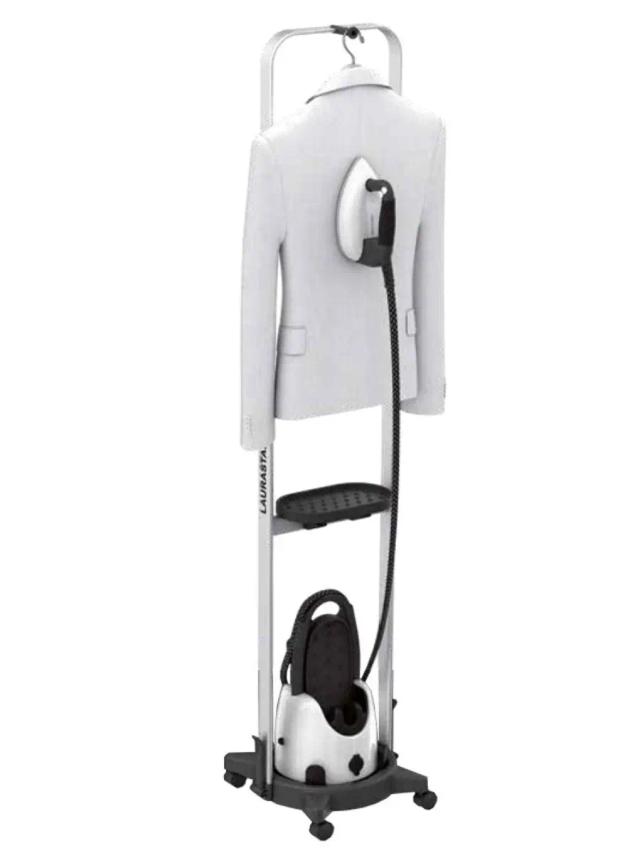 Stend, bug generatorlaryny ýa-da Laurastar buglaryny ulanyp, dik bugda eşikleri ütük etmek üçin niýetlenendir. Asyjynyň aşagynda bug generatory üçin tekje we eşikleri ütüklän wagtyňyz demir goýmak üçin silikon mat bar. Asyjynyň ýokarsynda asma saklaýjy bar. 105-den 177 santimetre çenli beýikligi saýlap bilersiňiz. Saklaýjy anodlaşdyrylan alýuminiý we plastmassadan ýasalýar we 5 kg çenli zatlary saklap bilýär. 4 tigiriň kömegi bilen jaýyň ýa-da otagyň islendik ýerinde hereket etmek aňsat.