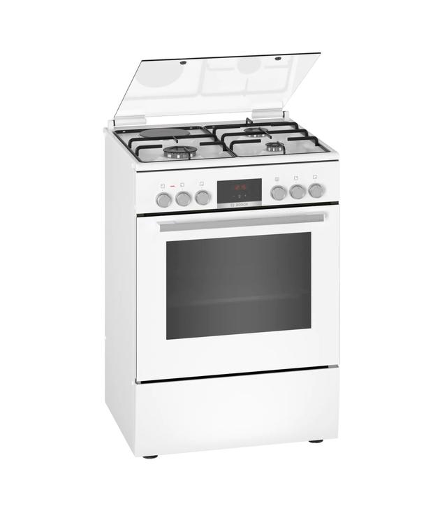 Комбинированная плита Bosch HXC39AG20Q — отдельностоящий прибор с расширенным функционалом. Газовая конфорка отвечает за интенсивный разогрев посуды, а электрическая позволяет равномерно распределить тепло. Некоторые особенности плиты: LED-дисплей с таймером. Обеспечивает удобство и контроль над процессом приготовления. Электрическая конфорка. Позволяет готовить даже при отключении газа. Поворотные переключатели. Обеспечивают эргономичное управление всеми функциями плиты.