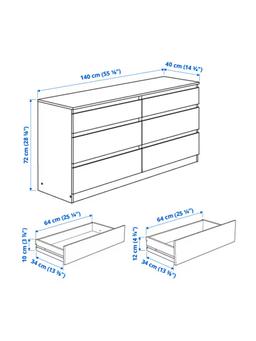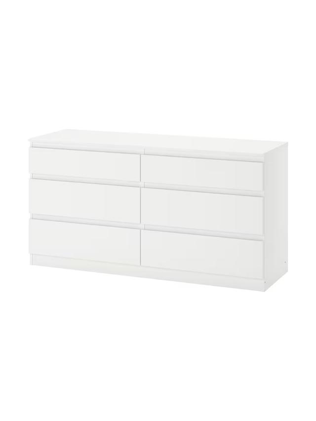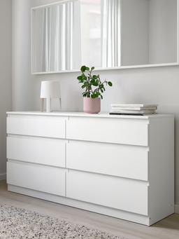 KULLEN – это вместительный комод с шестью ящиками. Он идеально подходит для хранения большого количества одежды в спальне или гардеробной. Его простой и чистый белый дизайн вписывается в любой стиль комнаты. Области Применения: Спальня, гардеробная. Технические Характеристики Цвет: Белый Material: ДСП, Бумажная пленка, Пластиковые кромки. Размеры: Ширина: 140 см, Глубина: 40 см, Высота: 72 см. Особенности: 6 вместительных ящиков, чистый дизайн.