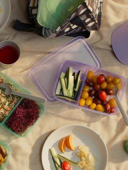 Контейнер для сэндвичей IKEA PRUTA с крышкой, сиреневый/зеленый, 22x14x5 см
