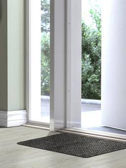 Коврик для двери серого цвета размером 38x58 см. Идеален для размещения перед дверью, помогает уменьшить попадание пыли и грязи в дом. Изготовлен из прочного и легкого в уходе материала.
