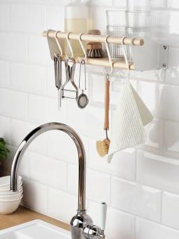 S-образный крючок NEREBY — это практичный аксессуар для подвешивания, предназначенный для оптимизации пространства на кухне или в других частях дома. Эти крючки в основном используются на кухонных рейлингах для подвешивания сковородок, половников, кухонных полотенец или других инструментов, сохраняя их под рукой. Их можно легко зацепить за рейлинг или штангу без использования каких-либо инструментов. Выполнен в белом цвете, а его размер идеально подходит для стандартных кухонных систем хранения. Изготовленный из высокопрочной стали с порошковым покрытием, он устойчив к коррозии, очень прочен и рассчитан на длительный срок службы.