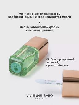 Характеристики Цвет: №02 GREEN APPLE Объем: 3.5ml Описание Масло Sirop de Fruits от косметической марки Vivienne Sabo предназначено для ухода за губами. Средство с натуральным маслом жожоба и витамином E обладает питательными, увлажняющими, защитными и восстанавливающими свойствами. Благодаря удобному аппликатору масло легко наносится на красную кайму, быстро распределяется и экономно расходуется. Легкая нелипкая текстура способствует активному впитыванию и высокому быстродействию. Способ применения Использовать для смягчения кожи губ и придания легкого оттенка. Можно наносить масло отдельно или поверх помады и карандаша для губ, чтобы создать влажный эффект.
