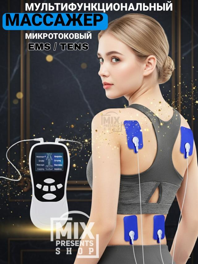 EMS/TENS массажер с 4 электродами это универсальный портативный прибор для домашней физиотерапии, сочетающий электростимуляцию мышц (EMS) и нервов (TENS). Он помогает снимать боль, расслаблять мышцы, улучшать кровообращение и тонус. 4 электрода (2 канала) позволяют обрабатывать обширные зоны, например, поясницу или плечи, шею и тд. 4 электрода: Обеспечивают одновременное воздействие на разные мышцы или одну большую область. Управление: Регулировка интенсивности и частоты импульсов, наличие таймера и различных программ массажа. • 8 программ • 15 режимов интенсивности • таймер • 4 электрода • зарядка от USB