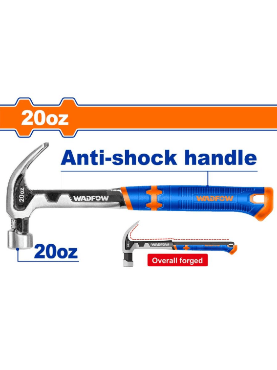 Вес: 20 унций/560 г. Ручка уникального дизайна. Полностью стальной кованый молоток-гвоздодер. Термическая обработка. Упаковано в бумажную карту.
