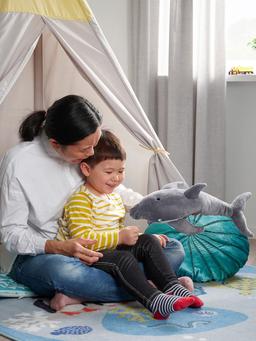 Эта мягкая игрушка в виде серого дельфина длиной 50 см изготовлена из приятного на ощупь материала. Идеально подходит для обнимашек, игр и сна, дарит детям ощущение уюта и безопасности.