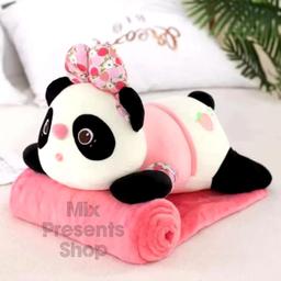 Игрушка мягкая "Панда" с пледом 3в1 (игрушка, плед, подушка) розовая
