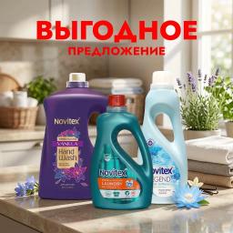 Набор - Универсальный гель для стирки Novitex Universal (2700 мл) + Novitex - жидкое мыло для рук с ароматом ваниль, 1800 г + Novitex LEGEND кондиционер для полотенца и белья, 1350 ml