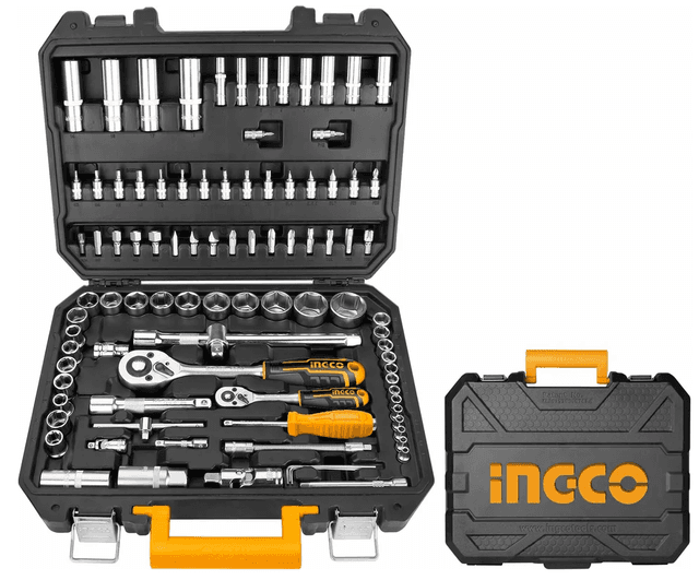 Комплектация Кейс 1/2" Торцевые головки шестигранные 1/2": 10, 11, 12, 13, 14, 15, 16, 17, 18, 19, 20, 21, 22, 23, 24, 27, 30, 32 мм - 18 шт. Головки удлиненные 1/2" х 77 мм (L) 14, 15, 17, 19 – 4 шт. Трещотка 1/2" 45T - 1 шт. Соединительный кардан 1/2" – 1 шт. Головки свечные 1/2" 16, 21 – 2 шт. Удлинитель 1/2" 125 мм, 250 мм. – 1 шт. Держатель переходник с 1/2" на 5/16" Биты 5/16" длинной 30 мм: H8, H10, H12, H14; T40, T45, T50, T55; SL8, SL10, SL12; PH3, PH4; PZ3, PZ4 - 15 шт. Переходник с отверстием 3/8" на 1/2" - 1 шт. 1/4" Торцевые головки шестигранные 1/4: 4, 4.5, 5, 5.5, 6, 7, 8, 9, 10, 11, 12, 13, 14 мм - 13 шт. Головок удлиненные длинной 50 мм: 6, 7, 8, 9, 10, 11, 12, 13 мм - 8 шт. Трещотка 1/4" 45T - 1 шт Шарнир карданный 1/4" - 1 шт Биты длинной 32 мм: H3, H4, H5, H6; T8, T10, T15, T20, T25, T30; SL4, SL5.5, SL7; PH1, PH2; PZ1, PZ2 - 17 шт. Гибкий удлинитель 150 мм - 1 шт. Удлинительная насадка: 50 мм, 100 мм - 2 шт. Вороток Т-образный 1/4" - 1 шт Вороток отверточный - 1 шт. Держатель для бит - 1 шт. Шестигранные ключи: 1,5 мм, 2 мм, 2,5 мм - 3 шт.