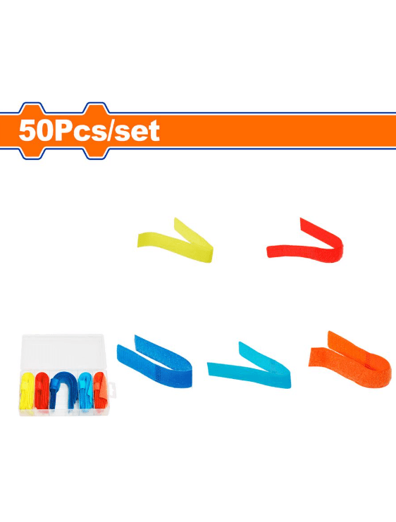 50 шт. Комплект липучек Материал: полиэстер 10 шт. 20х180 мм красные 10 шт. 20х180 мм оранжевые 10 шт. 20х180 мм синие 10 шт. 20х180 мм темно-синие 10 шт. 20х180 мм желтые. Упакованы в пластиковую коробку