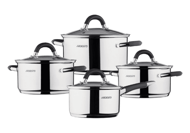 Набор кастрюль Ardesto AR1908SC из серии Gemini Salerno представляет собой набор посуды из 8 предметов, изготовленных из нержавеющей стали. Тип: Набор посуды (кастрюли и ковш) Количество предметов: 8 Материал: Нержавеющая сталь Ручки: Нержавеющая сталь с силиконовыми вставками Крышки: Термостойкое стекло с отверстием для выхода пара Дно: Многослойное Особенности: Мерная шкала на внутренней стороне кастрюль Отверстия для слива воды на ковше и одной из кастрюль Подходит для всех типов плит, включая индукционные Можно мыть в посудомоечной машине В набор входят: Ковш с крышкой: диаметр 16 см, объем 1.6 л Кастрюля с крышкой: диаметр 18 см, объем 2.3 л Кастрюля с крышкой: диаметр 20 см, объем 3.4 л Кастрюля с крышкой: диаметр 22 см, объем 4.4 л Каждый предмет учитываеться отдельно. (прим. 1 каструля + 1 крышка). Цвет: Серебристый (нержавеющая сталь)