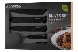 Набор кухонных ножей Ardesto AR2105BWD — это сочетание природной красоты и высоких технологий. Лезвия, изготовленные из высококачественной нержавеющей стали, обеспечивают идеальную нарезку любых продуктов, от нежных томатов до твердого мяса. Главной особенностью набора являются рукоятки и подставка, выполненные в стильном дизайне под дерево, что создает атмосферу уюта и благородства на вашей кухне, сохраняя при этом практичность современных материалов. Высококачественная нержавеющая сталь: Лезвия устойчивы к коррозии, долго сохраняют остроту и легко поддаются заточке. Стильный дизайн Black Wood: Рукоятки с текстурой темного дерева обеспечивают надежный захват и выглядят изысканно в любом интерьере. Универсальный набор из 5 ножей: В комплекте поварской нож, нож для хлеба, универсальный, нож для овощей и слайсер для тонкой нарезки. Эргономичная подставка: Компактный блок позволяет безопасно хранить ножи, защищая лезвия от затупления и экономя место на рабочей поверхности. Идеальная балансировка: Вес каждого ножа распределен так, чтобы рука не уставала даже при длительной работе на кухне. Простота в уходе: Гладкая поверхность стали и качественные материалы рукояток позволяют легко поддерживать гигиену набора.