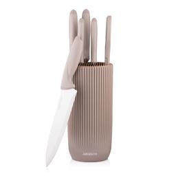 Набор ножей Ardesto AR2107KH — это премиальное дополнение к вашей кухне, сочетающее в себе профессиональное качество и изысканный дизайн. Набор состоит из пяти ножей разного назначения, изготовленных из высокоуглеродистой нержавеющей стали, и стильной подставки. Цвет хаки придает комплекту уникальный современный вид, выделяя его в интерьере любой кухни. Технические характеристики и особенности: Материал лезвий: Нержавеющая сталь 3CR13. Обеспечивает идеальный баланс между остротой, прочностью и легкостью заточки. Состав набора: Поварской нож (20.3 см) — основной инструмент для большинства задач. Нож для хлеба (20.3 см) — легко справляется с хрустящей корочкой. Нож для нарезки (20.3 см) — идеален для ровных слайсов. Универсальный нож (12.7 см) — для мелкой нарезки и чистки. Нож для овощей (8.9 см) — для филигранной работы с фруктами и овощами. Рукоятки: Выполнены из термостойкого пластика с матовым покрытием в цвете Хаки|Haky, которое не скользит даже в мокрых руках. Подставка: Прочный блок для хранения, защищающий ножи от соприкосновения и повреждений. Уход: Чтобы ножи служили долго, рекомендуется ручная мойка и тщательная сушка после использования. Дизайн: Оригинальный цвет Хаки|Haky, который подчеркнет индивидуальность вашей кухни.