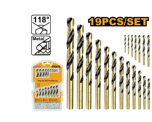 Набор спиральных сверл из быстрорежущей стали, 19 шт. AKDB9190