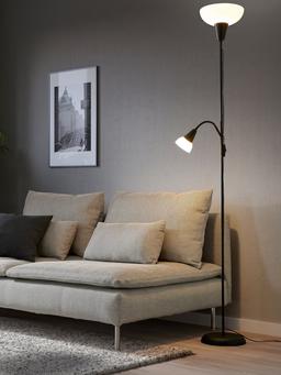 Торшер TÅGARP двойного назначения (верхний свет и лампа для чтения), обеспечивает общее и направленное освещение в одном приборе. Общий свет направлен на потолок, для чтения – прямо. Области Применения: Гостиная, спальня. Технические Характеристики Цвет: Черное основание, Белый абажур Material: Полипропиленовый пластик, сталь. Размеры: Высота: 178 см. Особенности: Два источника света (общий + для чтения), компактный.