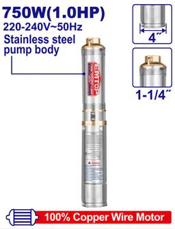 EWPPD07501 — колодезный насос бренда Emtop. Некоторые характеристики: напряжение: 220–240 В, частота: 50 Гц; мощность: 750 Вт (1,0 HP); максимальный напор: 80 м; максимальный поток: 6,0 м³/ч; диаметр трубы: 1 1/4 дюйма; корпус насоса: 4 дюйма; рабочее колесо: 10 ступеней; двигатель: с медной проволокой; корпус насоса: из нержавеющей стали;