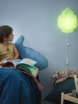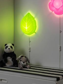 Настенный светильник, 23 см — стильный и мягко светящийся, в форме зелёного листа, подходит для дома, офиса и детской комнаты. Материал: пластик и LED-компоненты Высота: 23 см Цвет: зелёный Применение: комната, детская, коридор, рабочее место, спальня Особенности: крепится к стене, энергоэффективный LED, декоративный и красивый, легко чистится
