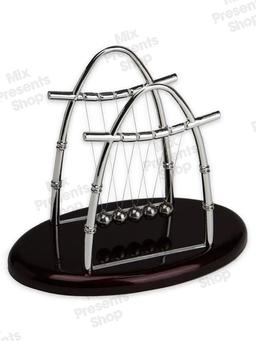 Настольный маятник антистресс "Шары Ньютона" Medium Пять металлических шаров, подвешенных на двух опорах, начинают свое успокаивающее действие посредством толчка одного из крайних шариков. Плавное покачивание шаров, быстро переключит внимание от нависших проблем, а сопровождающий ненавязчивый металлический стук, поможет снять эмоциональное напряжение. Расслабляющий эффект не заставит себя долго ждать. Мысли очистятся, и память о негативных происшествиях отойдет на второй план. Шары Ньютона - это система, которую изобрел Исаак Ньютон для демонстрации преобразования энергии. Он показал, что при отсутствии противодействующей силы шары могут двигаться вечно, но в данной ситуации это недостижимо. Шары Ньютона еще называют вечным двигателем, они были признаны в конце 20 века, и в основном использовались для релаксации, в психотерапии и для подсчета времени.Маятник Ньютона сегодня пользуется огромной популярностью у наших клиентов. Система состоит из подставки и пяти металлических шариков, которые подвешены на леске. Для активации маятника вам необходимо отвести один шарик в сторону и отпустить его. Затем наблюдайте, как шарики с противоположной стороны начинают двигаться в зеркальном отображении с той же скоростью. Через определенное время шарики останавливаются. Продолжительность движения зависит от размера и веса шариков: чем тяжелее и больше шарики, тем дольше процесс, и наоборот.