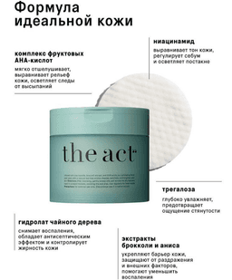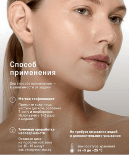 Очищающие пилинг-диски для лица с ниацинамидом и комплексом фруктовых АНА-кислот бережно обновляют кожу, регулируют выработку себума, выравнивают тон и текстуру. Состав, обогащённый активами и растительными экстрактами, осветляет гиперпигментацию и постакне, ускоряет заживление воспалений, сохраняя естественный баланс кожи. — нормализуют выработку себума — удаляют ороговевшие клетки и излишки себума — осветляют пигментные пятна и следы постакне — снижают воспаления и покраснения — бережное отшелушивание без раздражения — удобный формат — очищение и уход в один шаг — можно использовать точечно на воспалениях как экспресс-маску — подходит для всех типов кожи — 60 шт — хватит на 2–3 месяца — не требует смывания — идеально для путешествий и занятых дней Аромат: чайное дерево 60 шт