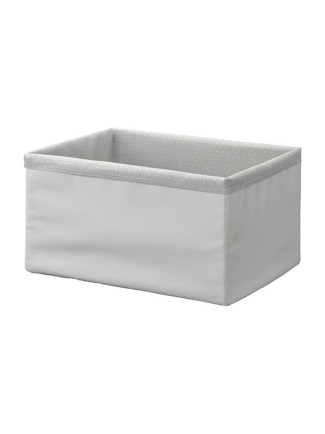 Короб BAXNA – это мягкий и гибкий органайзер, идеально подходящий для хранения одежды, постельного белья или сезонных вещей. Благодаря расцветке (серо-белый) легко вписывается в любой интерьер. Короб оснащен мягкими ручками для переноски и может быть сложен, когда не используется. Области Применения: Для упорядоченного хранения на полках в шкафах или под кроватью. Технические Характеристики Цвет: Серо-белый Материал: 100% полипропилен. Размеры: Длина: 34 см, Ширина: 26 см, Высота: 18 см.