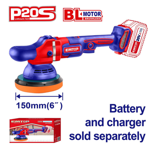 Полировальная аккумуляторная машина EMTOP ELAP2015 — это высококачественный бесщеточный инструмент на 20 В, идеально подходящий для профессиональной и бытовой полировки автомобилей, мебели и металлических поверхностей. Аккумуляторное питание обеспечивает мобильность и свободу движения. Машина оснащена регулировкой скорости (2000-4500 об/мин) для точной финишной отделки и использует полировальный диск диаметром 150 мм. Эргономичный дизайн и легкий вес (брутто 5,175 кг) гарантируют комфорт при длительной работе. Обратите внимание: аккумулятор и зарядное устройство продаются отдельно. Технические характеристики: Модель: Полировальная машина EMTOP ELAP2015 Двигатель: 20 В, бесщеточный Напряжение заряда (ЗУ): 220-240 В~50/60 Гц (ЗУ в комплект не входит) Скорость холостого хода: 2000-4500 об/мин Диаметр полировального диска: 150 мм Регулировка скорости: Да Вес (брутто): 5,175 кг Ключевые преимущества: Мобильность: Аккумуляторное питание для работы без проводов. Производительность: Бесщеточный двигатель и регулируемая скорость. Универсальность: Подходит для автосервиса и обработки поверхностей в быту. Комплектация: Полировальная машина EMTOP ELAP2015 Диск для полировки: 1 шт. Упаковка: Картонная коробка Примечание: Поставляется без АКБ и зарядного устройства!