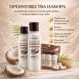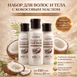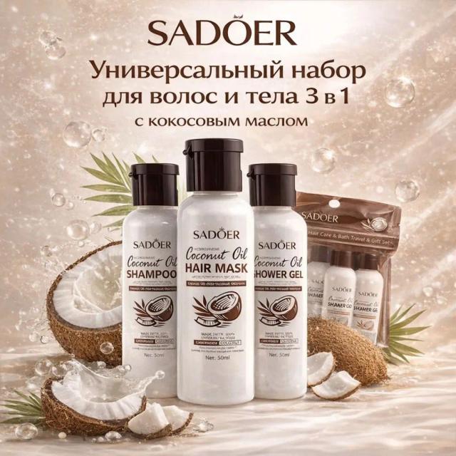 SADOER Универсальный набор для волос и тела 3 в 1 с кокосовым маслом , 50 мл