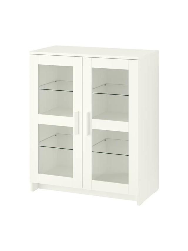 Шкаф с дверцами, стекло/белый, 78×95 см – удобный шкаф для хранения книг, декоративных предметов или повседневных вещей. Белый цвет визуально расширяет пространство, стеклянные дверцы позволяют видеть содержимое. Материал: стеклянные дверцы, ламинированное дерево Размер: 78 × 95 см Цвет: белый Применение: гостиная, кабинет, спальня Особенности: светлый дизайн, помогает поддерживать порядок, стеклянные дверцы для обзора содержимого.