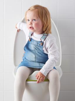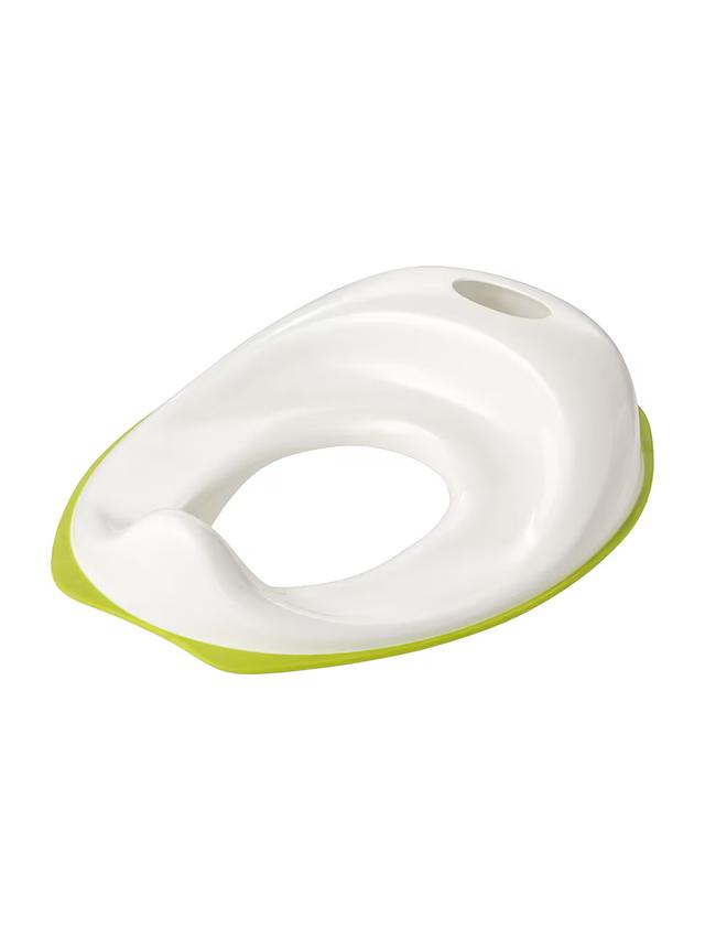 Детское сиденье для унитаза белого цвета с зелёным ободком – модель TOSSIG. Устанавливается поверх обычного унитаза. Оснащено противоскользящей резиной снизу для устойчивости. Лёгкое, удобно в использовании и подходит для приучения ребёнка к туалету.