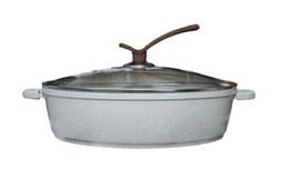 Чёрная сковорода диаметром 24 см, удобна для жарки и приготовления разных блюд. Прочная и легко моется.
