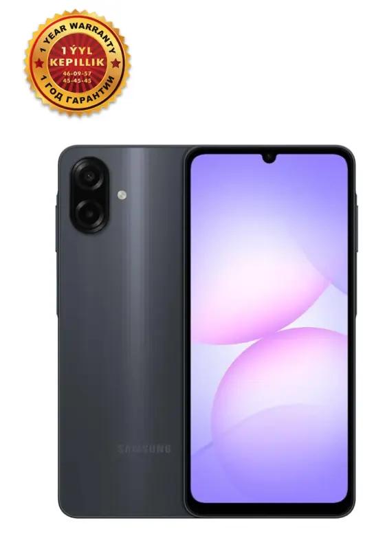 Смартфон Samsung Galaxy A07 6/128 GB, Чёрный — это надежное устройство начального уровня. Дисплей: Оснащен 6,7-дюймовым экраном с частотой обновления 90 Гц. Тип матрицы — PLS LCD, а разрешение — HD+ (720 x 1600 пикселей). Производительность: Работает на восьмиядерном процессоре MediaTek Helio G99. Память: Конфигурация включает 6 GB оперативной памяти и 128 GB встроенного хранилища. Также есть возможность расширения с помощью карты microSDXC. Камера: Основная камера имеет разрешение 50 МП, а фронтальная — 8 МП. Аккумулятор: Емкий литий-ионный аккумулятор на 5000 мАч обеспечивает длительное время работы. Дополнительно: Поддерживает две SIM-карты, имеет боковой сканер отпечатков пальцев и защиту от пыли и брызг воды стандарта IP54. Вес устройства составляет 184 г. Операционная система: Работает под управлением Android 15 с пользовательским интерфейсом One UI 7.