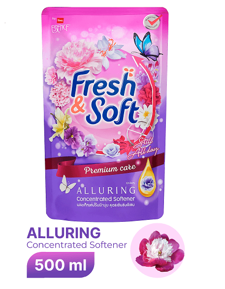 Смягчитель для белья Fresh & Soft Alluring 500мл разработан, чтобы сделать вашу одежду мягкой и придать ей привлекательный аромат. Смягчает ткани: Разработан, чтобы делать одежду мягче после стирки. Притягательный аромат: Придает вашему белью пленительный и приятный аромат.