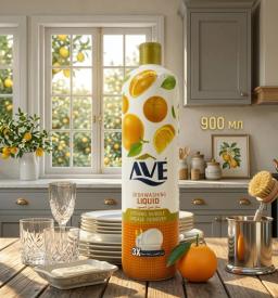 Средство для мытья посуды Ave с ароматом апельсина (900 мл) — это эффективный концентрат, предназначенный для быстрого удаления жира и создания гигиенической чистоты на кухне. Благодаря мощной формуле средство справляется с загрязнениями даже в холодной воде. Гель Ave "Апельсин" (часто встречается вариант «Апельсин и цветы») обладает следующими характеристиками: Мгновенное растворение жира: Специальные активные компоненты быстро расщепляют жировые пленки и засохшие остатки пищи. Безопасный состав: Согласно brigplus.ru, средство не содержит агрессивных отбеливающих веществ, что позволяет использовать его для мытья хрусталя, нержавеющей стали и столовых приборов без риска порчи. Устранение запахов: Эффективно нейтрализует резкие запахи еды, такие как запах рыбы, мяса или чеснока, оставляя свежий цитрусовый аромат. Экономичность: Густая консистенция обеспечивает хорошее пенообразование, что снижает расход средства. Блеск поверхностей: После ополаскивания посуда приобретает сияющий блеск без разводов и пятен.