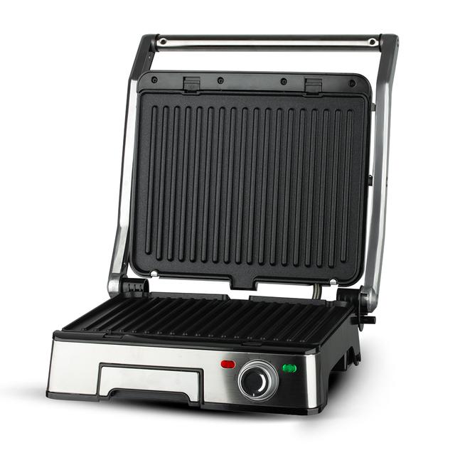 LEXICAL LSM-2507 — это высокомощный прижимной электрогриль, который предлагает профессиональное качество приготовления прямо на вашей кухне. Благодаря внушительной мощности 2200 Вт, гриль моментально нагревается, обеспечивая идеальную прожарку стейков, рыбы, курицы, а также превосходных панини и сэндвичей. Функционал прибора позволяет полностью открывать его на 180°, превращая в большую жарочную поверхность. Ключевые Преимущества Модели Сверхвысокая Мощность (2200 Вт): Гарантирует быстрое и стабильное распределение тепла, что критически важно для "запечатывания" соков в мясе и получения хрустящей корочки. Гранитное Антипригарное Покрытие: Высококачественное покрытие исключает прилипание пищи, минимизирует необходимость использования масла и обеспечивает легкую, быструю очистку. Функция 180° Гриля: Возможность полностью открыть верхнюю крышку, превратив гриль в две независимые жарочные поверхности. Идеально для одновременного приготовления большого количества овощей или морепродуктов. Точный Контроль Температуры: Оснащен регулятором температуры, позволяющим точно подстроить нагрев под тип продукта — от деликатных овощей до толстых стейков. Долговечный Корпус: Стильный и прочный корпус из нержавеющей стали обеспечивает долговечность и современный внешний вид, легко очищается снаружи. Удобство: В комплекте имеются два поддона для сбора жира, которые эффективно отводят излишки масла, делая блюда более полезными
